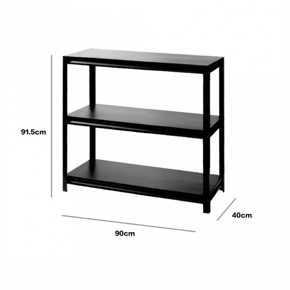 ●寬90cm 高91.5cm 深40cm ●三層碳鋼烤漆板,表層噴塗加強處理更耐刮 ●每層載重100KG ●可自由調整層板及側欄高度 ●內葫蘆孔結構,更美觀
