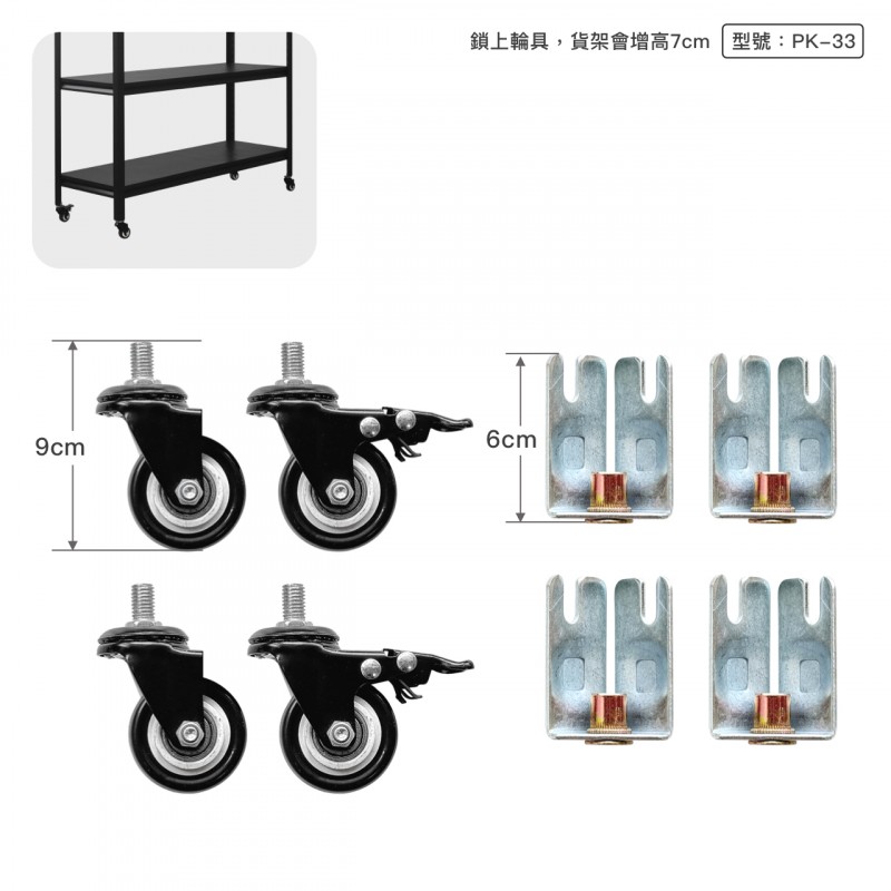 黑砂層架裝輪後,整座總載重100公斤
